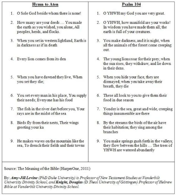 The similarity between the great Hymn of Aten and the psalm 104 after it was discovered and translated was very amazing that it drove many to think it was stolen from Aten great Hymn .